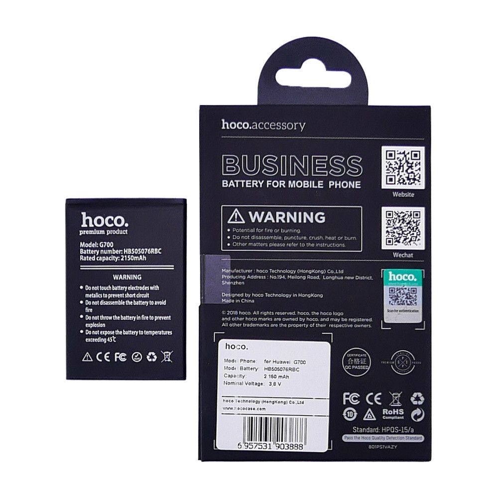 Акумулятор Hoco Huawei G606, G610, G700, G710, A199, Y600, Y3 II, LUA-U22 (HB505076RBC)