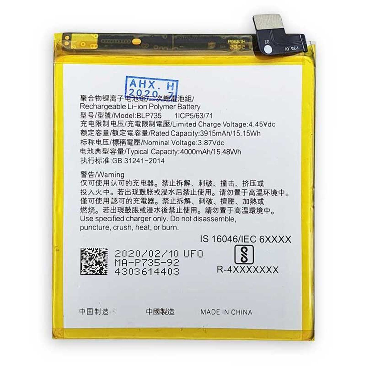 На Аккумулятор OPPO Reno 2/Reno 2 Z/Reno 2 F (BLP735) [Original] 12 мес. гарантии обеспечена гарантия. Уточняйте срок гарантии в характеристиках товара или у менеджера при оформлении заказа. Обязательно сохраняйте упаковку товара целой в течение всего срока гарантии, это позволит, в случае необходимости, максимально быстро выполнить гарантийные условия.