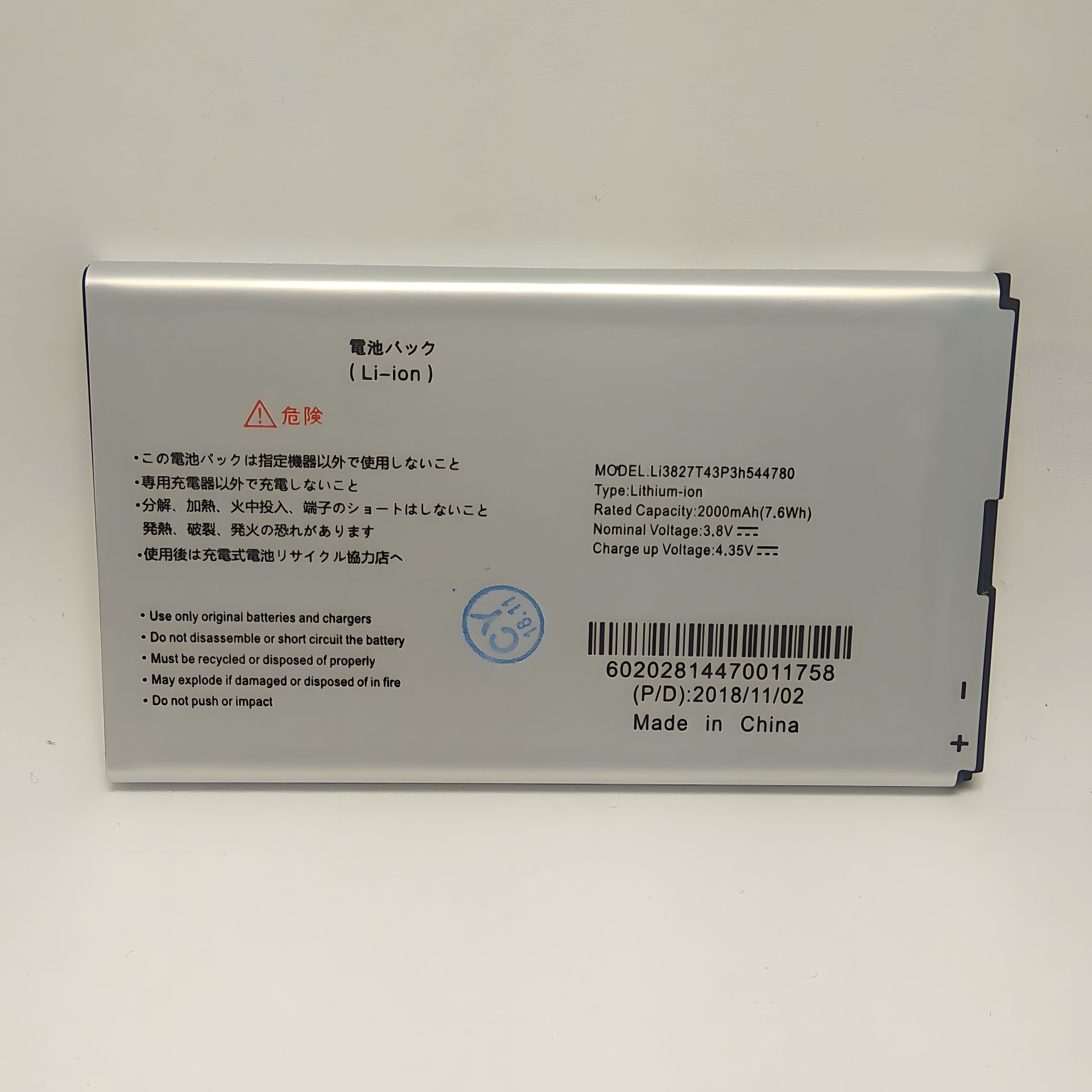 Маркировка АКБ:Li3827T43P3h544780