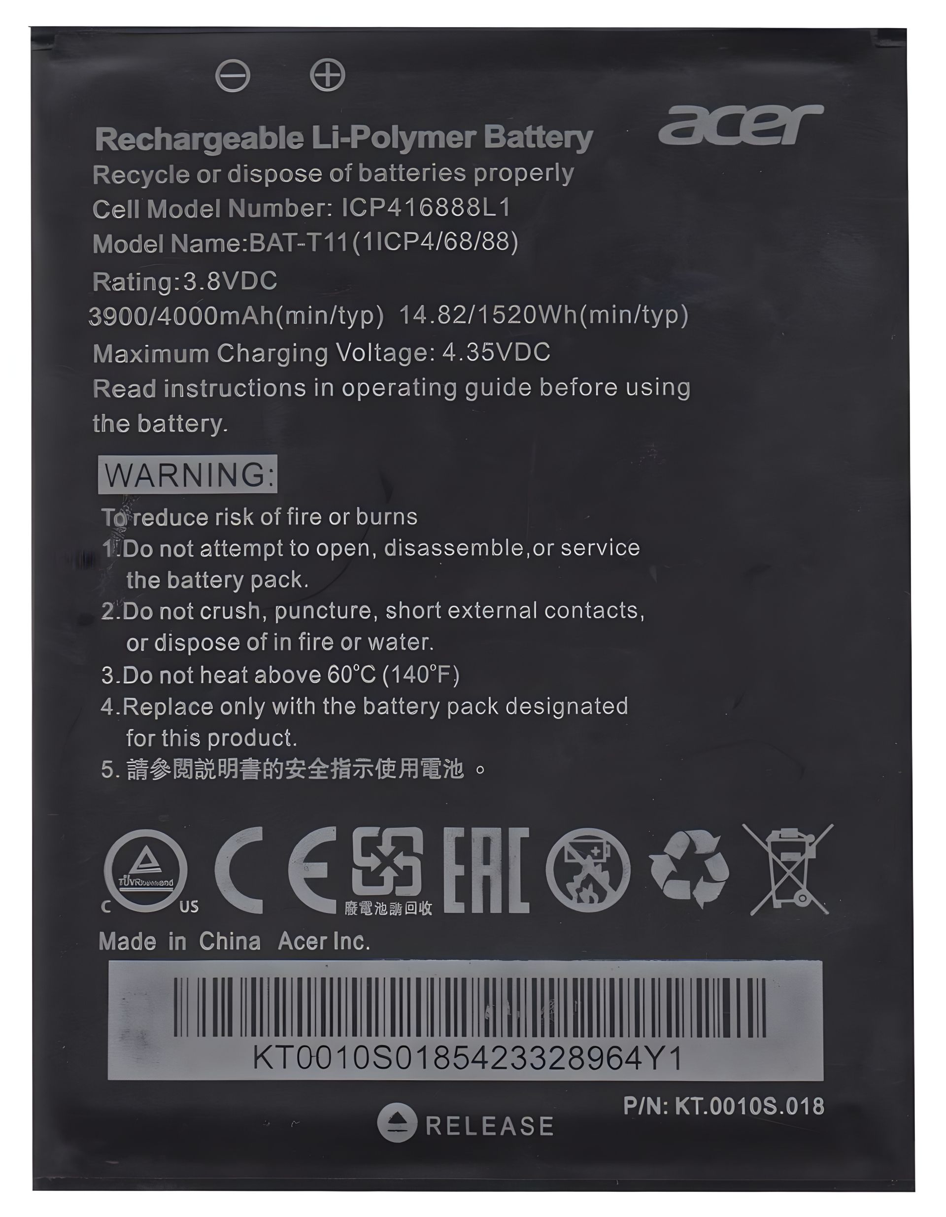 Новая АКБ (аккумуляторная батарея) вдохнет новую жизнь в Ваше устройство и позволит пользоваться им еще долгое время, вопреки стремлению производителя заставить Вас покупать новые гаджеты снова и снова. Заказать Аккумулятор Acer Liquid Z630 (BAT-T11) 1ICP4/68/88 [Original] 12 мес. гарантии можно в магазине mobenergy.com.ua с доставкой по Украине и гарантией.