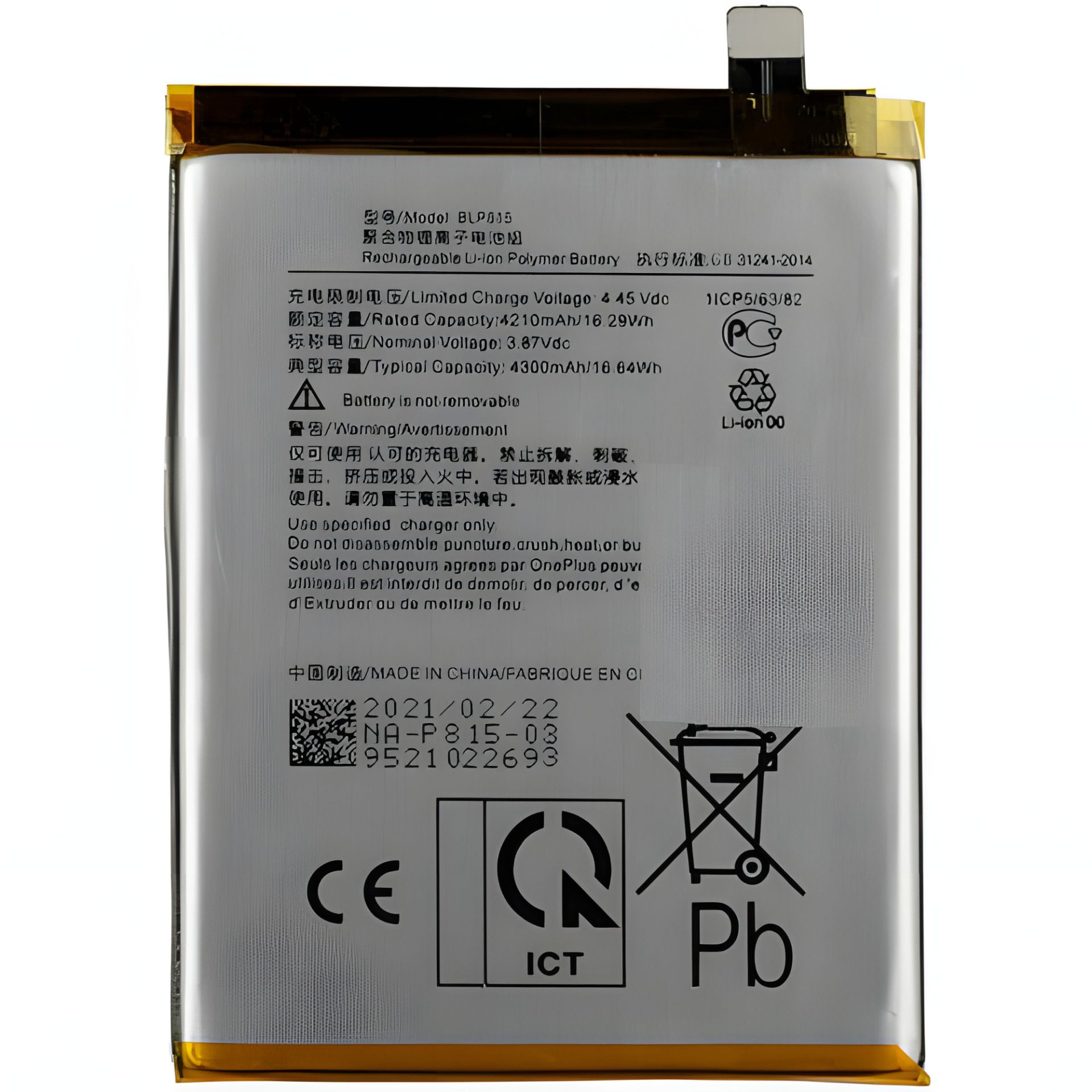 OnePlus BLP815 АКУМУЛЯТОР 4300 mAh | OnePlus Nord N10 5G [Original PRC] 12 міс. гарантії