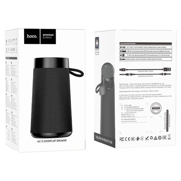 - Колонка Hoco HC13 Sports сумісна з більшістю Bluetooth-пристроїв, включаючи смартфони, планшети та ноутбуки, а також підтримує відтворення музики з SD-карток та USB-флешок.