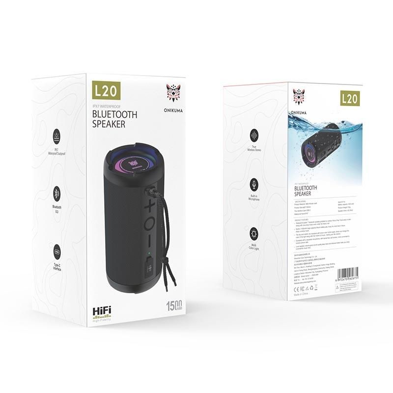 Onikuma L20 RGB, портативна колонка, IPX7, USB, AUX, TF, BT5.3, 10W, 1500mAh, 6h, black