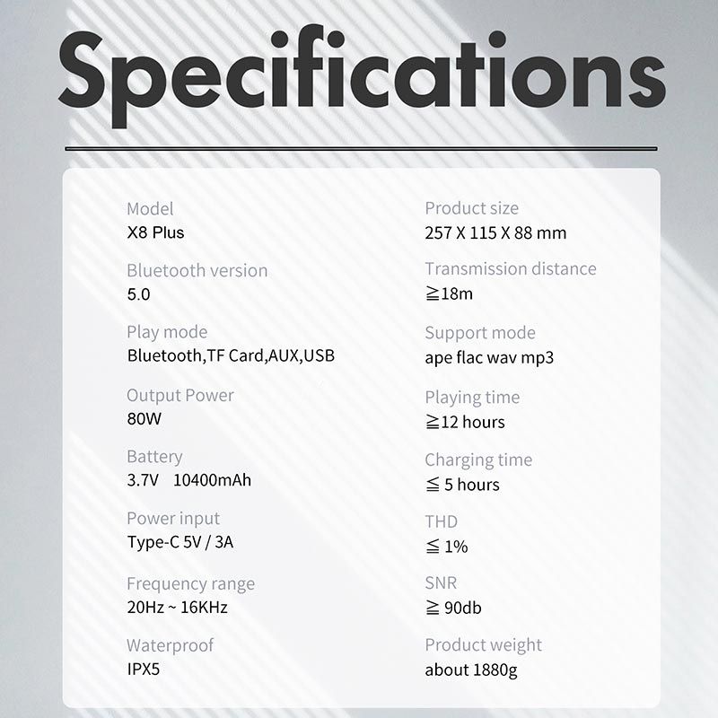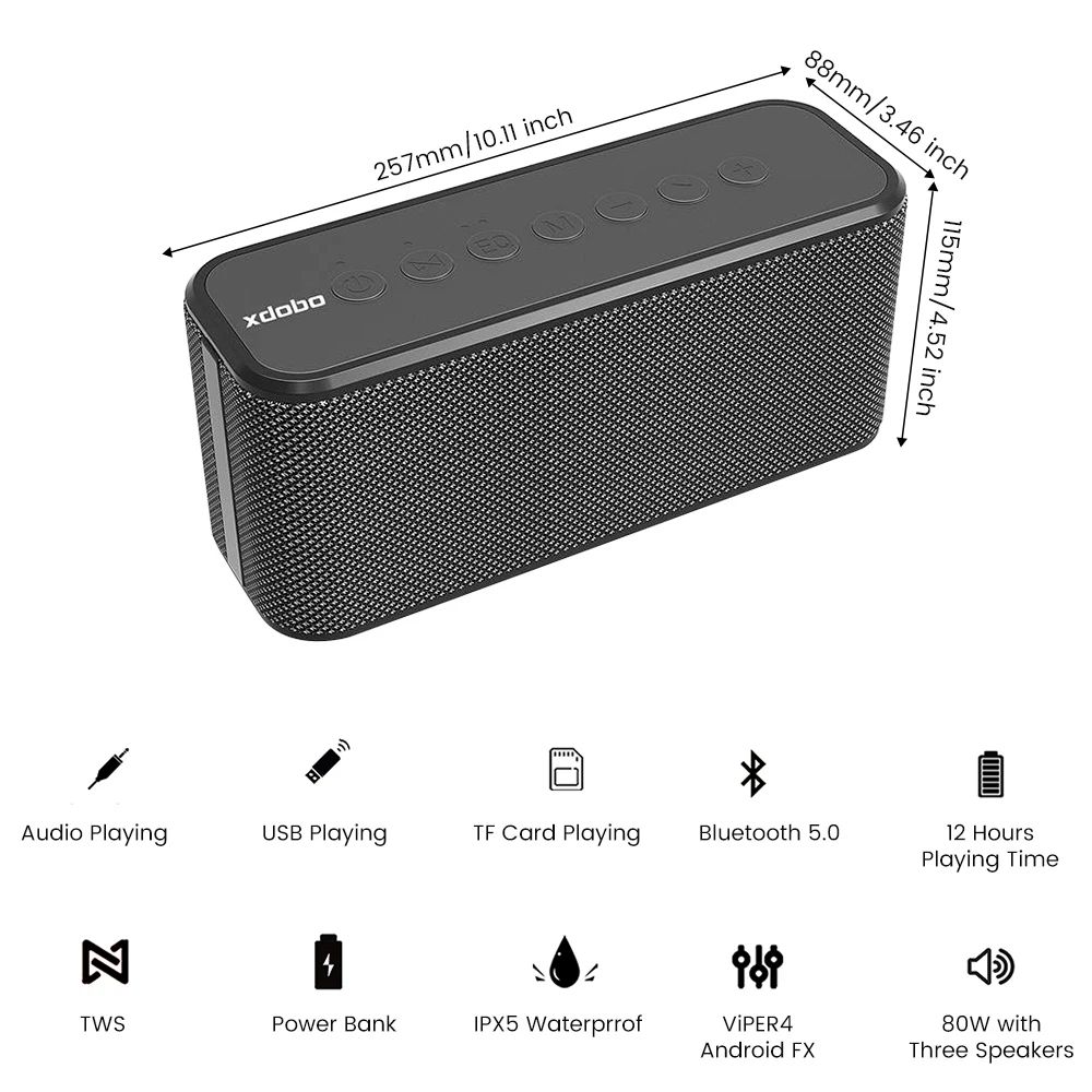 Акустика xdobo X8 Plus IPX5 | BT5.0, DSP, 80W, TWS, 12h Max | black