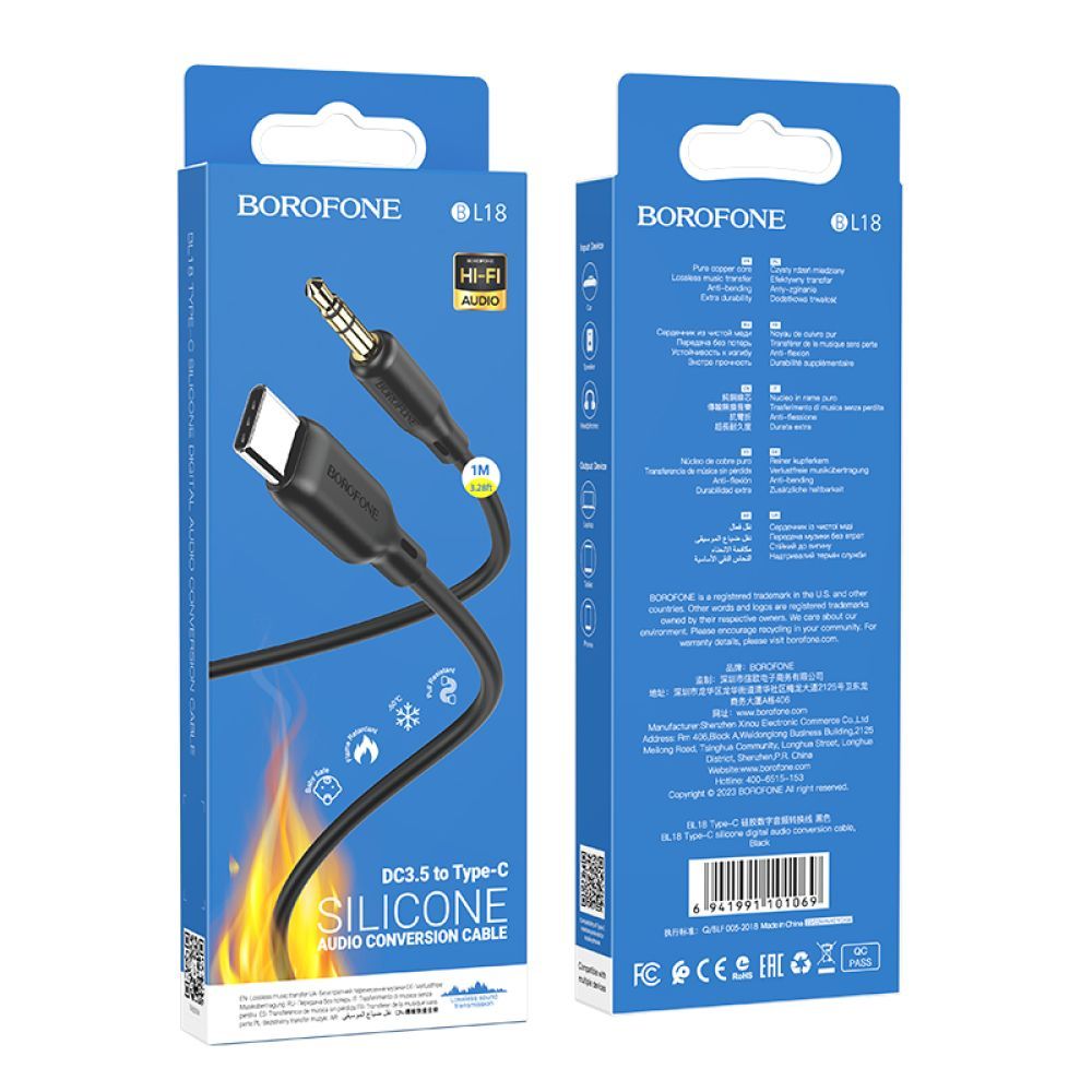 Аудіокабель AUX Borofone BL18, Type-C, AUX, Silicone, 1m, Чорний