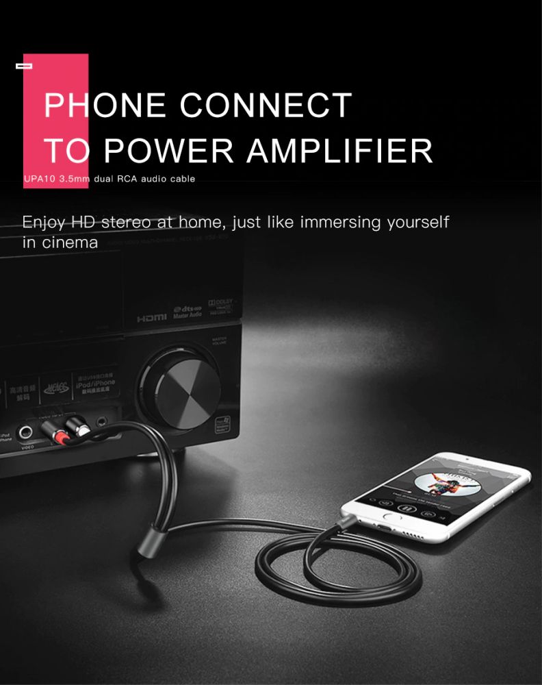 AUX кабель Hoco UPA10 Jack 3.5 до RCA 1.5m сірий