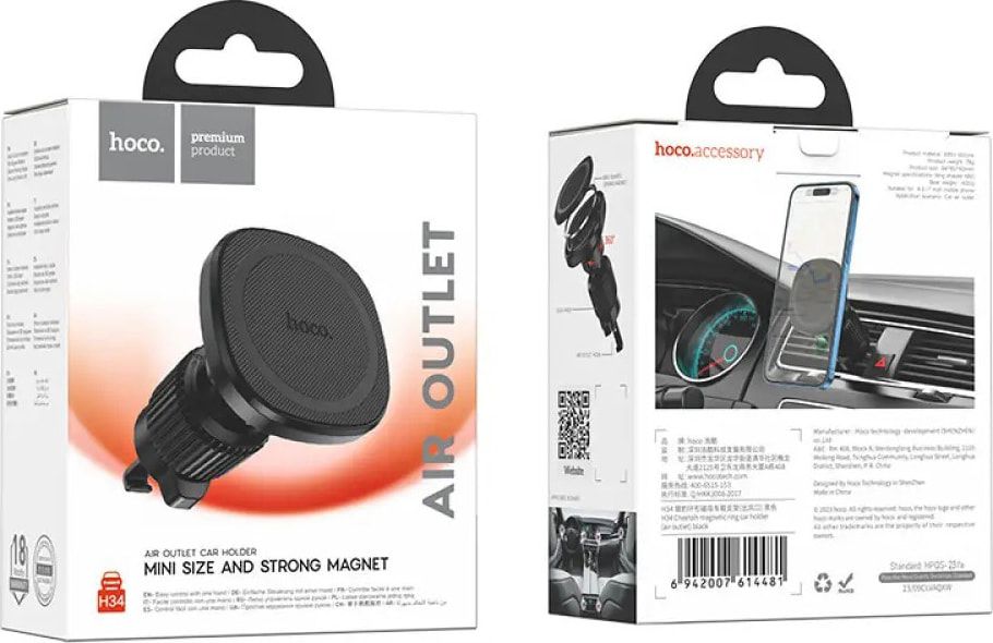 Hoco H34 – це сучасний та зручний магнітний тримач для смартфона, який кріпиться до повітропроводу автомобіля. Забезпечує надійну фіксацію пристрою навіть на складних ділянках дороги, зберігаючи зручний доступ до екрану.