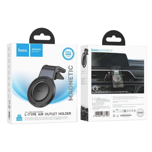 Hoco H59 – це компактний, надійний та стильний аксесуар для зручного розміщення смартфона в автомобілі. Завдяки потужним магнітам та ергономічному дизайну, тримач забезпечує безпечне використання телефону під час поїздок, не обмежуючи огляд водія.