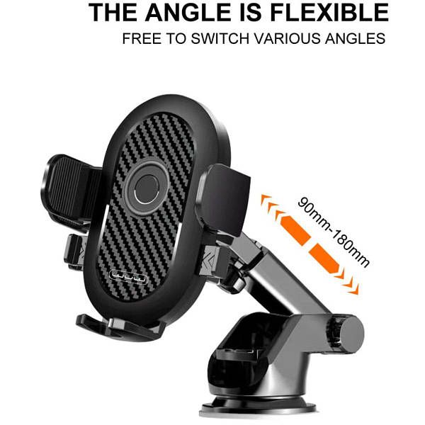 - Інноваційний механізм кріплення дозволяє швидко та легко встановити смартфон у тримач однією рукою. Під вагою пристрою бічні фіксатори автоматично підлаштовуються під розміри, забезпечуючи надійне кріплення.