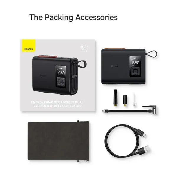 Автокомпресор Baseus Mega EnergyPump Series Dual Cylinder Wireless Inflator, 250W, 6000 mAh Black CRNL060001