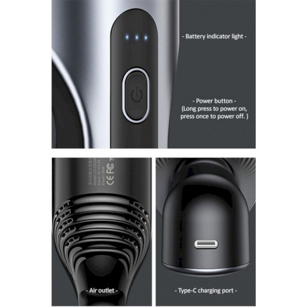 Це мініатюрний автомобільний пилосос з інтерфейсом зарядки - USB Type C, до якого кабель додається в комплекті. Також разом з пилососом є дві насадки, які розширюють можливості пристрою.