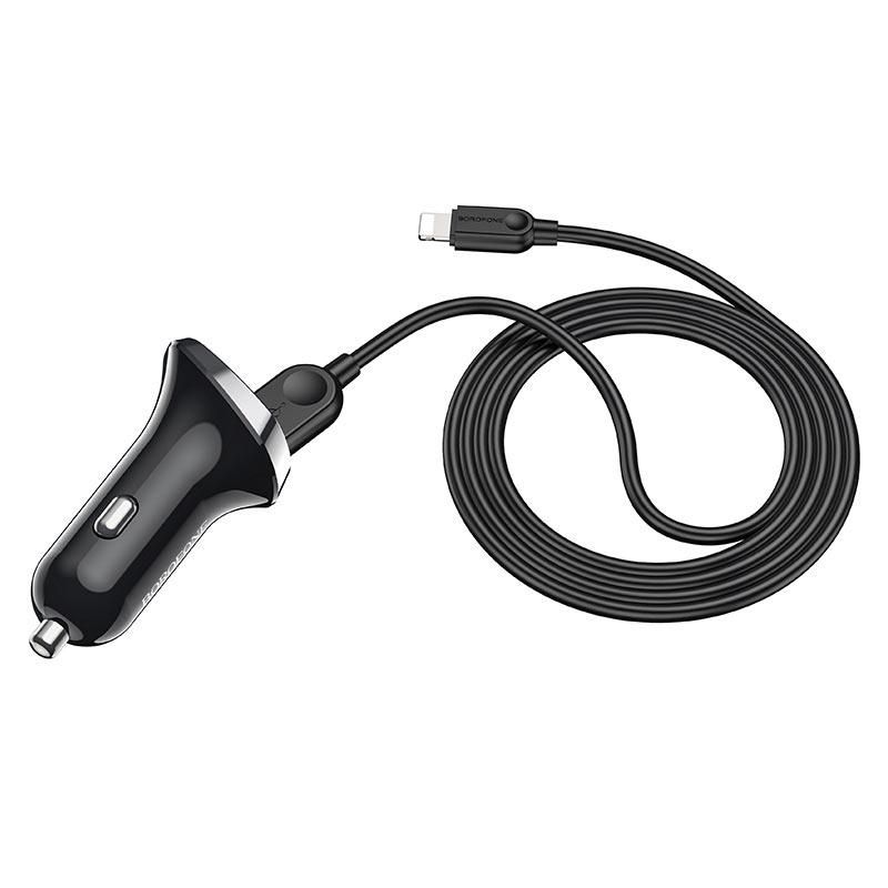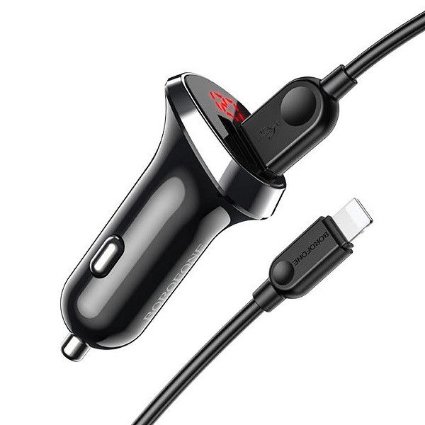 Автомобільний зарядний пристрій Borofone BZ15 2 USB з чорним дисплеєм + кабель USB to Lightning iPhone