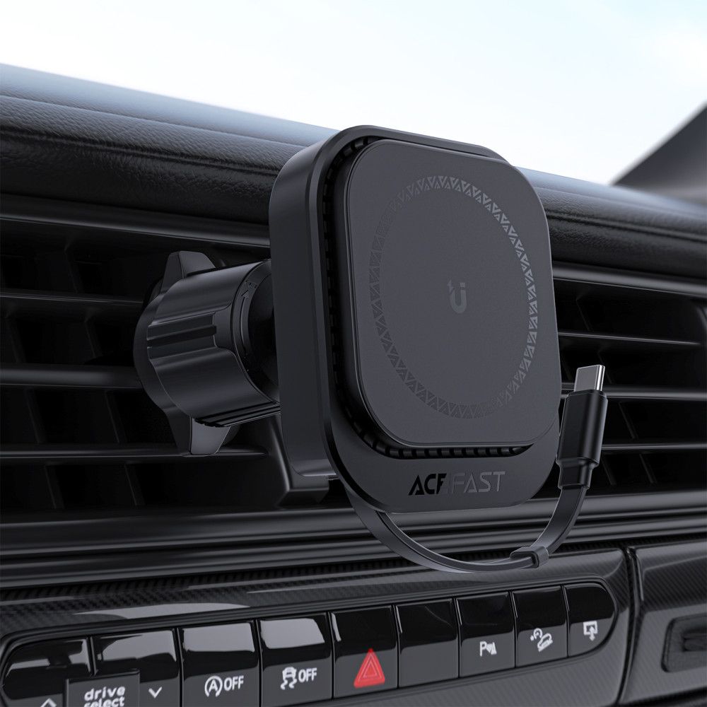Автомобільний тримач Acefast D32 з кріпленням на вентиляційну решітку не заважає і дозволяє водієві в будь-який момент бачити повідомлення та іншу інформацію на смартфоні. Фіксація пристрою за допомогою магнітів захищає від випадкового падіння та не дряпає корпус. Аксесуар з підтримкою бездротової зарядки та датчиком наближення витримує навантаження до 300 грам та вміщує смартфон з діагоналлю в межах 4.5-6.7 дюймів та шириною 60-95 мм.