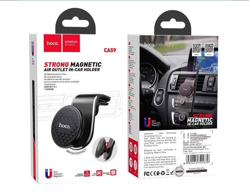 - Тримач Hoco CA59 розрахований для монтажу на вентиляційну решітку автомобіля. Він оснащений кріпленням у вигляді кліпси, що дозволяє будь-якої миті прикріпити пристосування на місце і так само швидко його демонтувати, якщо в його використанні немає необхідності.