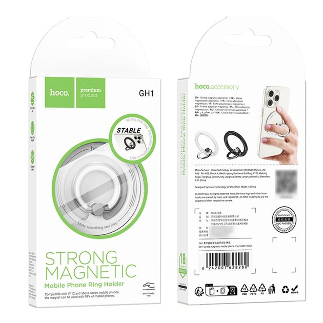 Магнітний тримач Hoco GH1 — це стильний, компактний і функціональний аксесуар, який забезпечує надійне кріплення смартфона в руці, на робочому столі або в автомобілі. Завдяки міцній магнітній системі та поворотному механізму, цей тримач робить використання телефону зручним та безпечним як у повсякденному житті, так і у дорозі. Ця модель сумісна з пристроями Apple серії iPhone 12 та новішими, а також з іншими смартфонами за наявності магнітного індуктора.