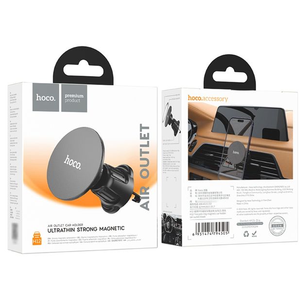 Hoco H12 - це універсальний магнітний тримач для смартфона, який встановлюється у вентиляційний отвір автомобіля. Цей стильний аксесуар забезпечує зручний доступ до пристрою під час подорожі, дозволяючи користуватися навігацією або відповідати на дзвінки, не відволікаючись від дороги.
