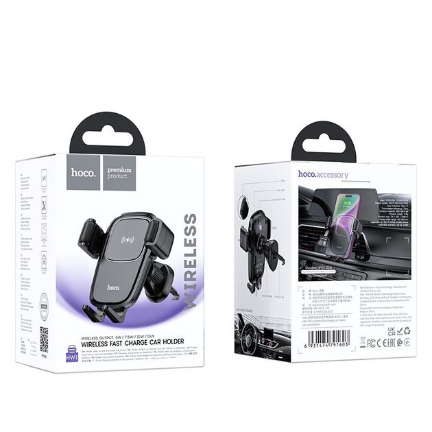 Hoco HW1 Pro - це універсальний автотримач з функцією бездротової зарядки, розроблений для встановлення у вентиляційну решітку автомобіля. Він забезпечує надійну фіксацію смартфона та одночасну швидку зарядку, поєднуючи в собі стильний дизайн, продуману ергономіку та сучасні технології.