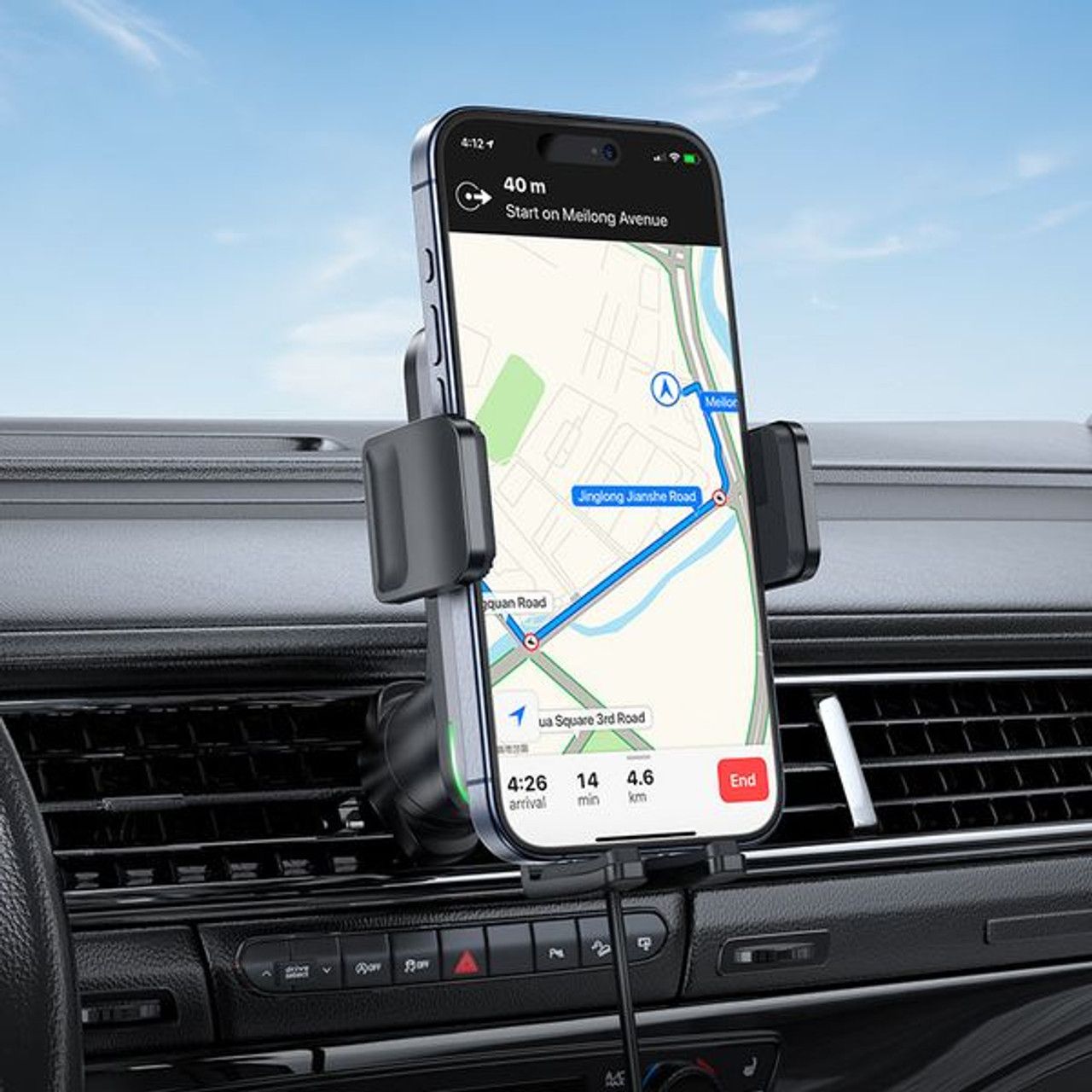 - Механічний затискач з бічними фіксаторами та нижньою підставкою забезпечує безпеку пристрою навіть під час руху нерівною дорогою.
