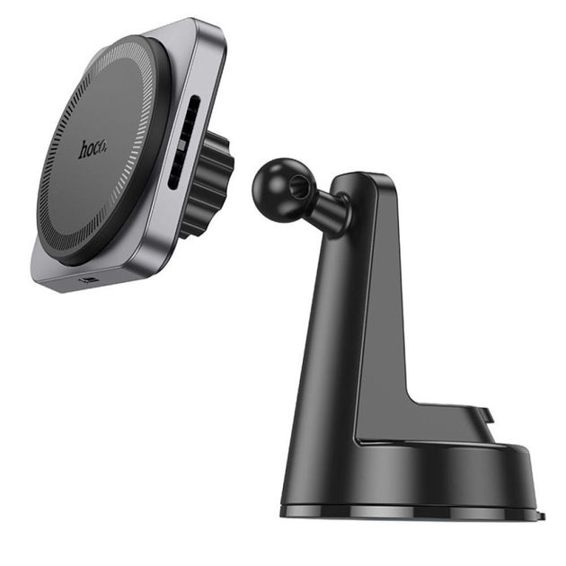Магнітний автотримач Hoco HW16 Speed Wireless 15W Чорно-Сірий
