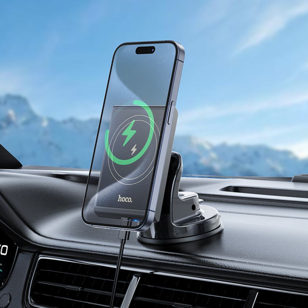 Автотримач магнітний з бездротовою зарядкою Hoco HW20, 15W, black