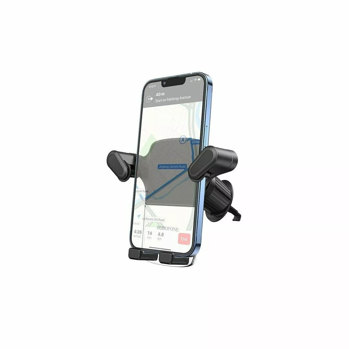 BOROFONE BH86 — це механічний автомобільний тримач для смартфона з кріпленням на вентиляційну решітку. Силіконові накладки на фіксаторах амортизують тряску від різкого гальмування і руху нерівною дорогою, а також перешкоджають появі подряпин на корпусі гаджета. Підходить для всіх смартфонів розміром 4,5-7 дюймів.