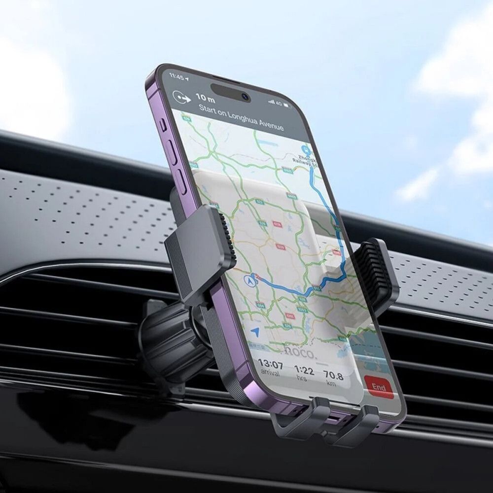 Hoco H26 – це стильний та функціональний аксесуар для вашого автомобіля, розроблений з урахуванням потреб сучасних водіїв. Пристрій кріпиться до вентиляційної решітки за допомогою надійного гачка, забезпечуючи стійкість та безпеку вашого смартфона під час поїздки. Компактний дизайн та високоякісні матеріали роблять цей тримач ідеальним вибором для щоденного використання.