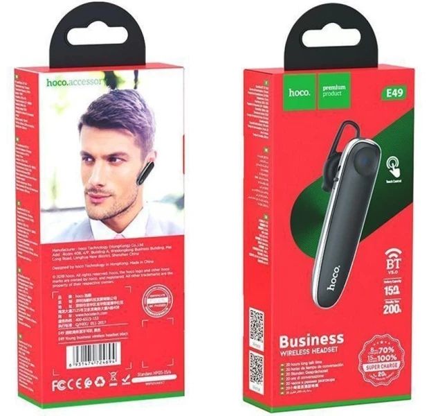 Бездротова гарнітура Hoco E49 Bluetooth 5.0, Mono, 150mAh, 20h, чорна