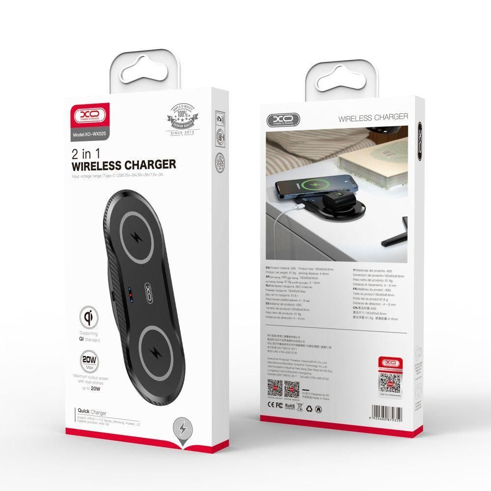 XO WX025 20W Бездротове зарядне 2 в 1 Чорне