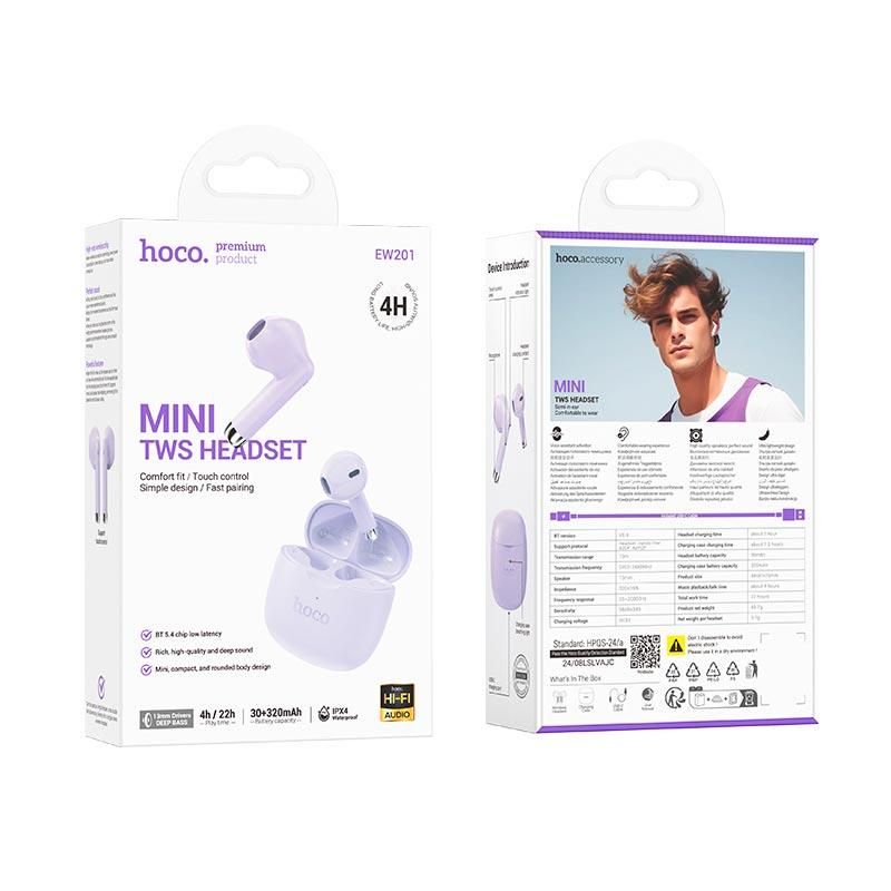 Бездротові навушники HOCO EW201 Graceful true wireless BT headset, BT5.4, purple