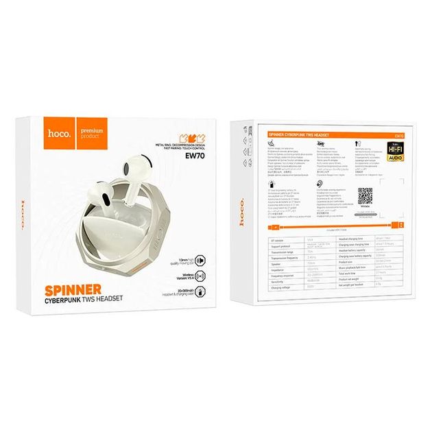 - HOCO Glory EW70 підтримують функцію майстер-слейв перемикання, що дозволяє використовувати будь-який навушник окремо або одночасно. Вбудовані сенсорні елементи керування дозволяють легко перемикати треки, регулювати гучність та активувати голосовий помічник Siri одним дотиком.