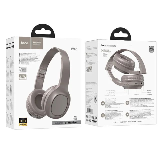 Hoco W46 Повнорозмірні бездротові навушники |BT5.3/AUX, 20h, Type-C| коричневі