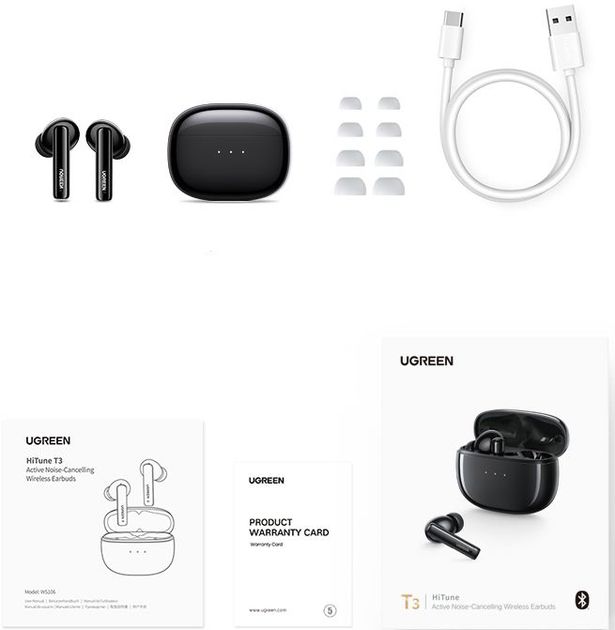 Бездротові навушники UGREEN WS106 HiTune T3 з активним шумопоглинанням (чорні) (UGR-90401)