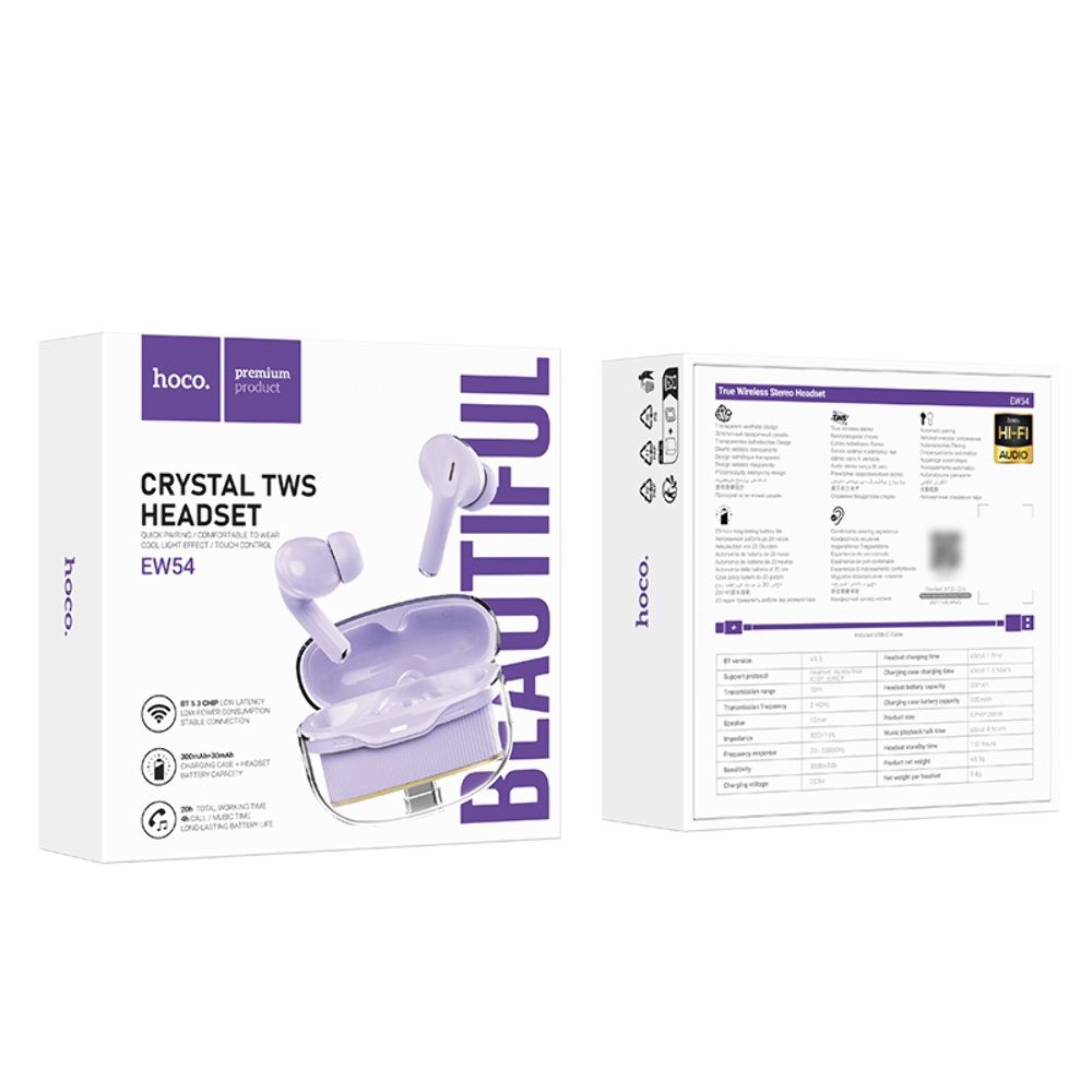 Бездротові вакуумні TWS навушники Hoco EW54 purple
