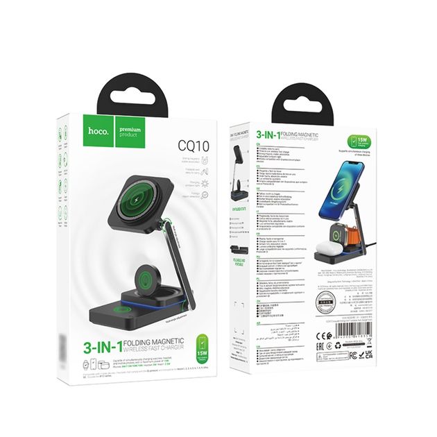 Бездротовий зарядний пристрій Hoco CQ10 3в1 black