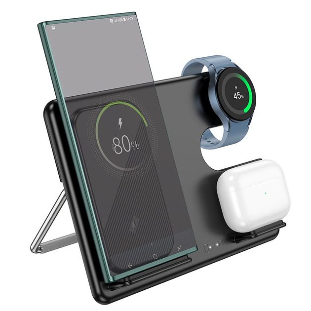 Hoco CQ2 Бездротовий зарядний пристрій 3в1 (SAM Watch/phone/earphone, 15WQi, 27W Type-C) black