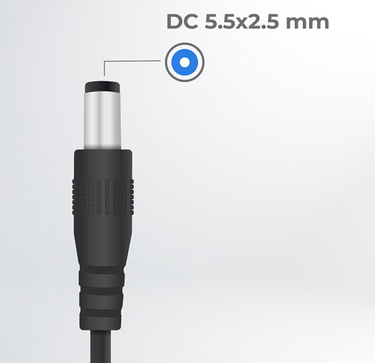 - Стандартний роз'єм 5.5x2.5 мм сумісний з більшістю мережевих пристроїв.