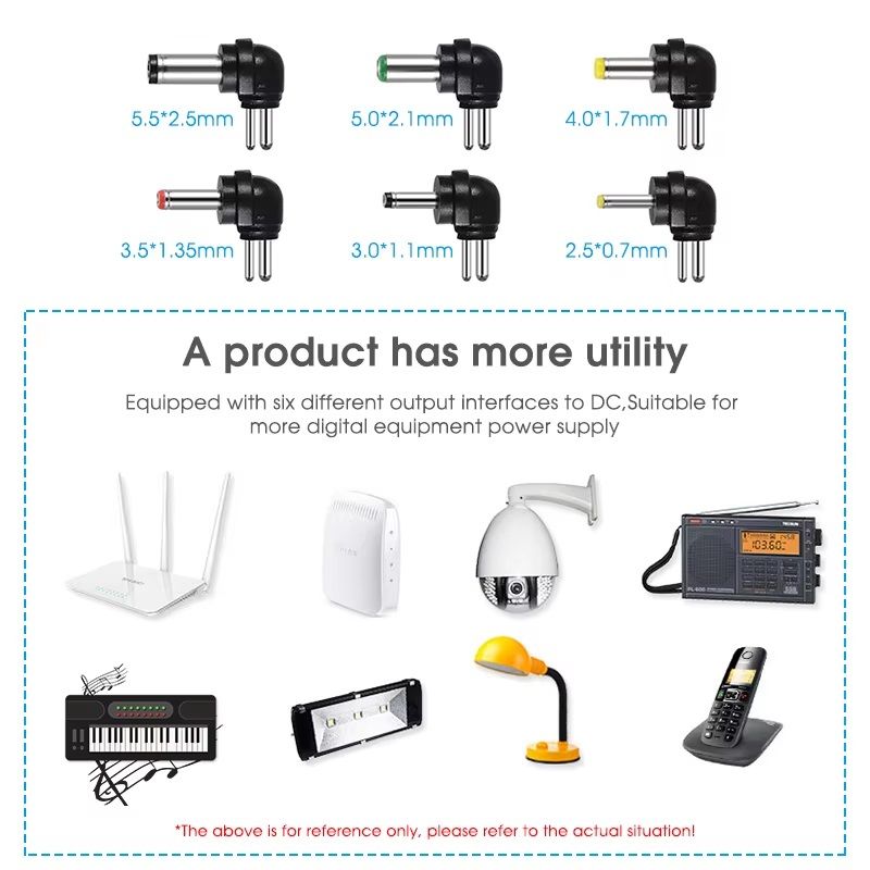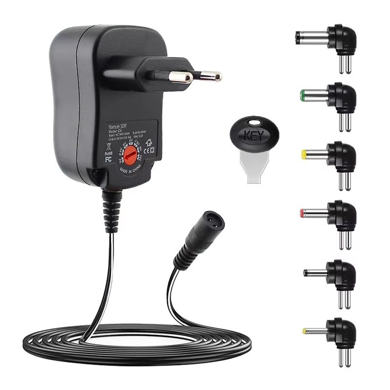 Це універсальний блок живлення для мультимедійних та персональних цифрових електронних пристроїв. Він оснащений перемикачем для вибору потрібної напруги та набором роз'ємів. Вибір напруги можливий від 3 до 12 В. У комплект входить 6 видів змінних роз'ємів. Напругу можна вибрати за допомогою потенціометра, ключ до якого йде в комплекті.
