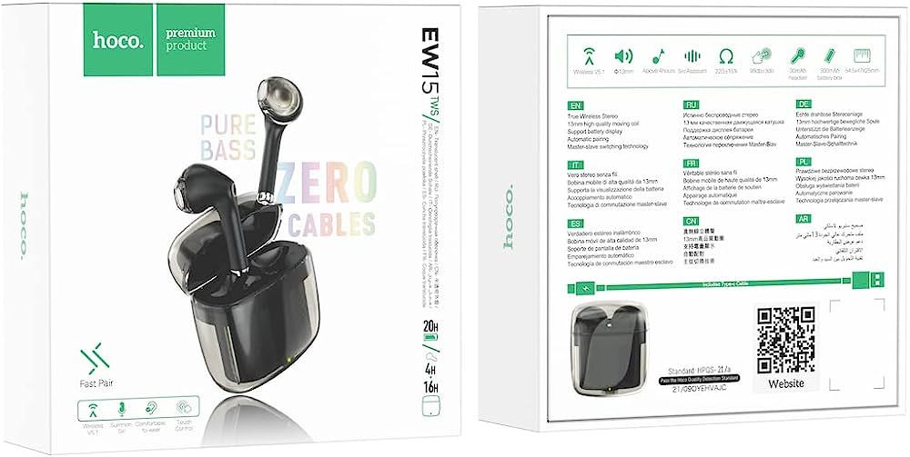 Чорна Блютуз Стерео Гарнітура Hoco EW15
