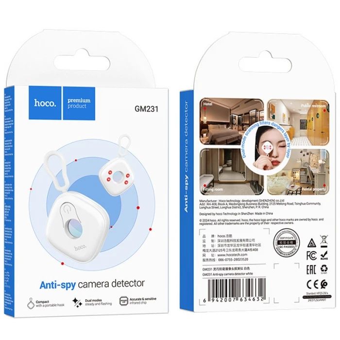 Детектор прихованих камер Hoco GM231 – це надійний пристрій для забезпечення вашої конфіденційності. Цей компактний та стильний брелок-детектор допоможе швидко виявити приховані камери у готельних номерах, офісах, конференц-залах та інших приміщеннях. Завдяки зручному формату та простому управлінню, він стане незамінним помічником у захисті особистого простору.