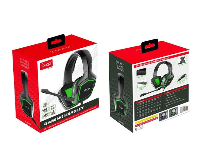 Дротова ігрова гарнітура iPega PG-R006G, 3.5mm, Noice Reduction, 2m, black-green