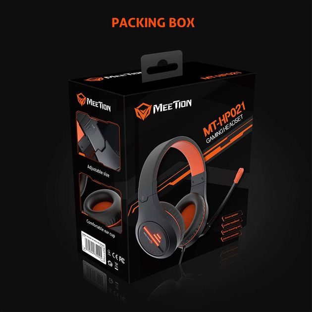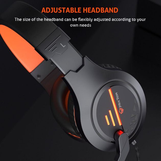 Ігрова гарнітура дротова MeeTion MT-HP021 Gaming Backlit, USB, 3.5mm, 1.8m, black-orange