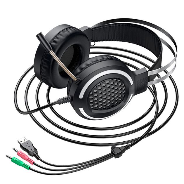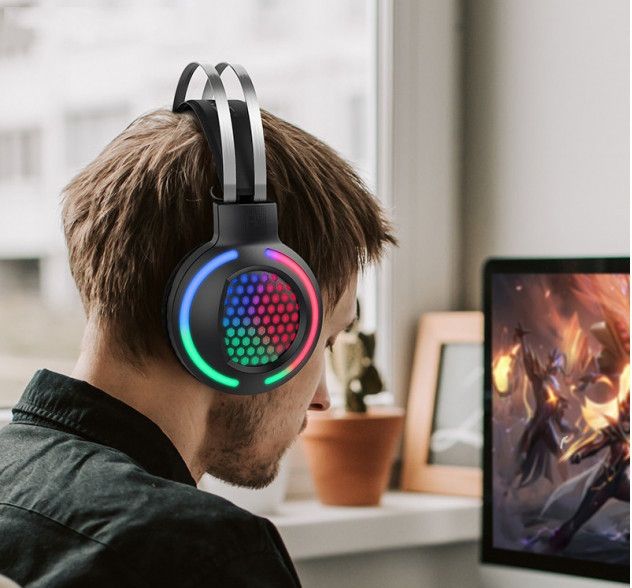 Дротові ігрові навушники НОСО Gaming LED Headphones ESD03, USB, 2х3.5mm, 2m, чорні