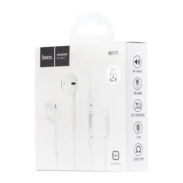 HOCO M111 Primero – це зручні та стильні дротові навушники, призначені для пристроїв Apple iPhone з роз'ємом Lightning. Вони забезпечують чистий і насичений звук, комфортну посадку та зручне керування відтворенням та дзвінками.