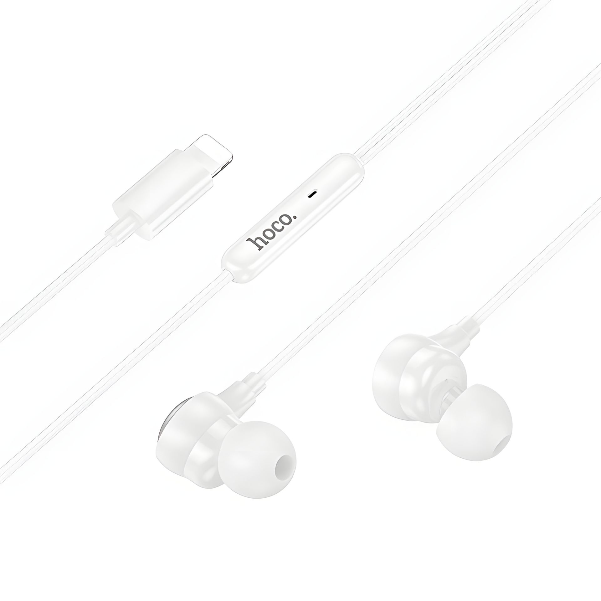 Універсальні дротові навушники HOCO M116 Benevolent з мікрофоном, 1.2m, lightning, white