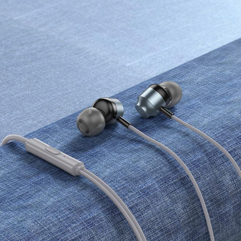 HOCO M122 дротові навушники з мікрофоном, 3.5mm, 1.2m, металево-сірі