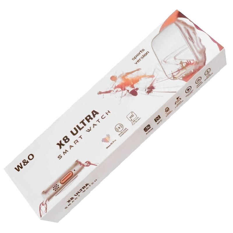 W and O X8 Ultra – це сучасний смарт-годинник з широкими можливостями, високою якістю виконання та стильним дизайном. Він працює на операційній системі Watch OS, забезпечуючи швидку та стабільну роботу програм без затримок. Оснащений безліччю сенсорів та функцій, які роблять його відмінним вибором для активних користувачів, які дбають про здоров'я та комфорт.