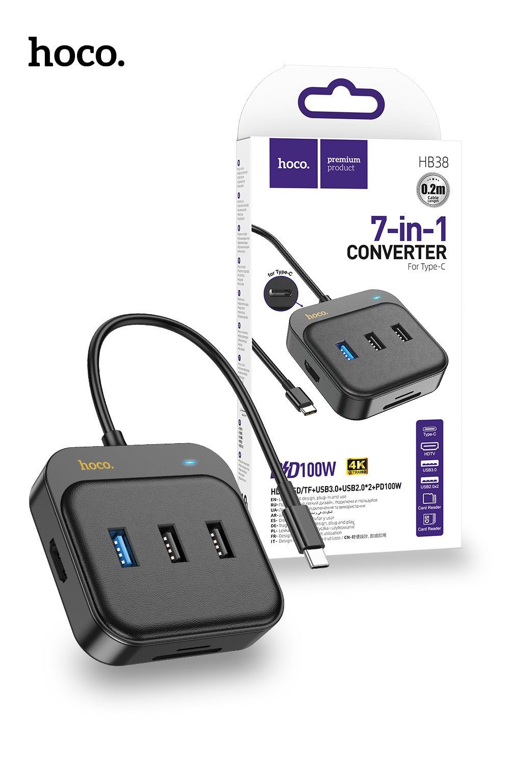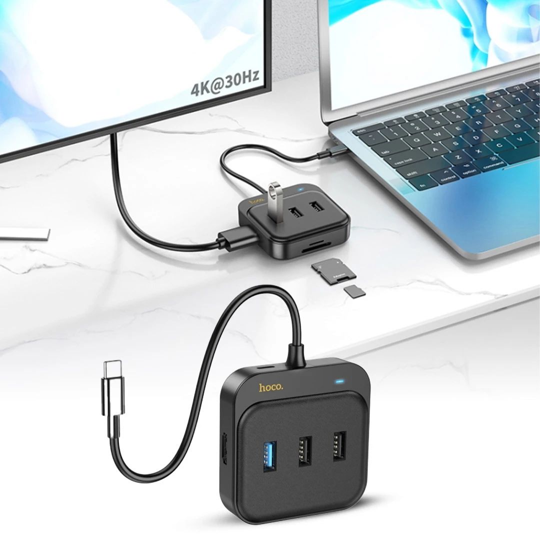Hoco HB38 Easy Link 7-в-1 — це сучасний багатофункціональний концентратор, який перетворює один порт Type-C вашого ноутбука, планшета або смартфона на сім повноцінних інтерфейсів. Він ідеально підійде для роботи, навчання та мультимедіа, пропонуючи надійність, компактність та стильний дизайн. З ним можна легко підключити додаткові пристрої, вивести зображення на великий екран, швидко передати дані або зарядити гаджети.