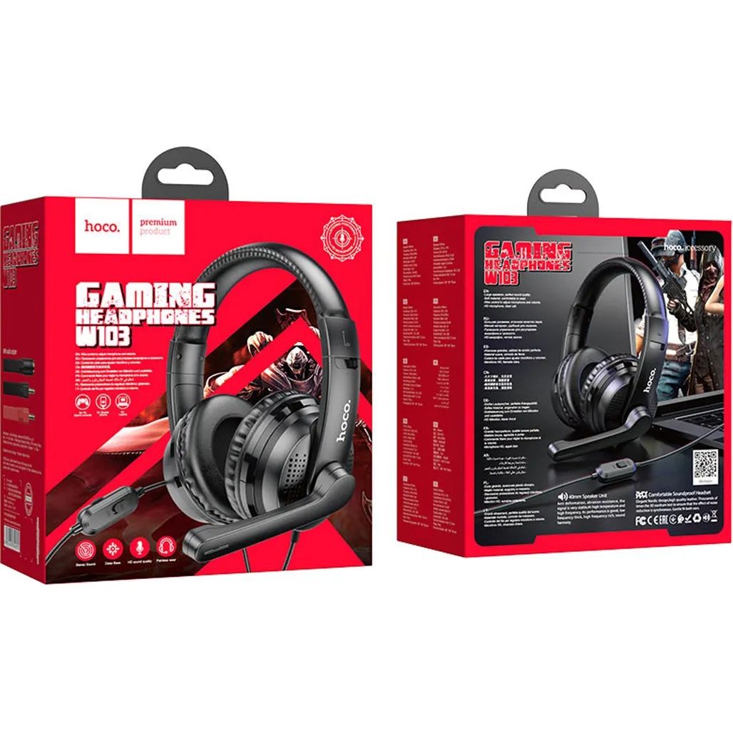 Hoco W103 Magic Ігрові накладні навушники, Чорний, 3.5mm, 1.2m
