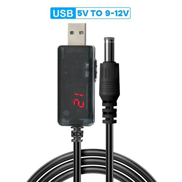 Кабель для підключення Wi-Fi роутера та інших пристроїв від порту USB (повербанк та ін. джерела живлення). Підходить для більшості роутерів та інших пристроїв, що потребують 9В / 12В постійного струму силою до 1А.