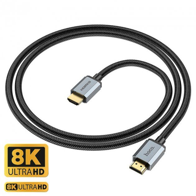 Кабель HDMI Hoco US03 - 1m v2.1 8K Ultra HD з нейлоновою оплеткою та позолоченими конекторами, чорний